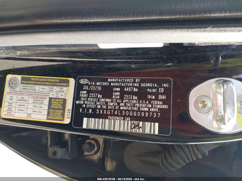 2016 KIA OPTIMA - 5XXGT4L30GG099737, цвет - Черный, 2.4, Бензин, Передний привод из США