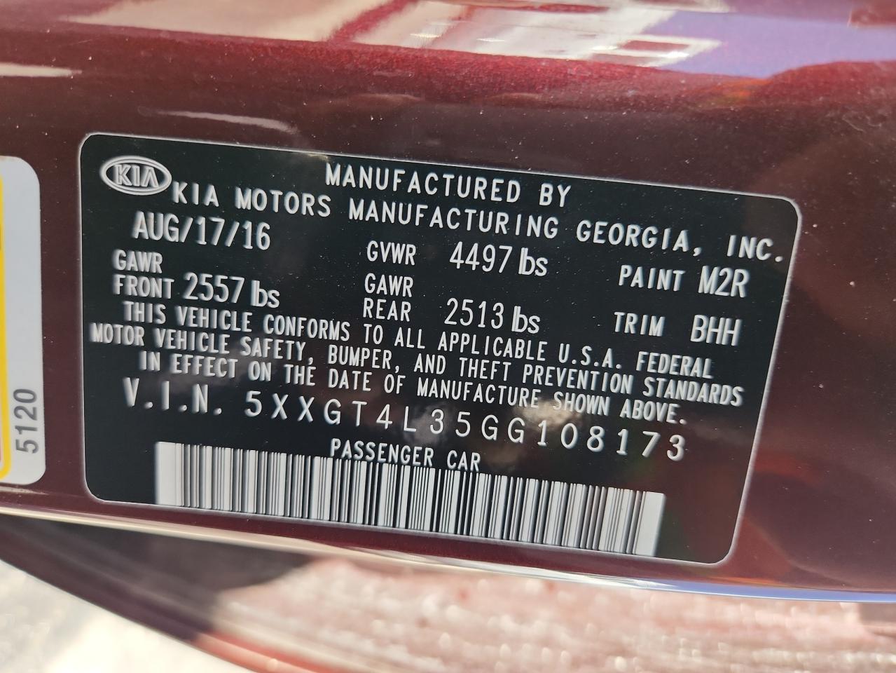 2016 KIA OPTIMA - 5XXGT4L35GG108173, цвет - Бордовый, 2.4, Бензин, из США