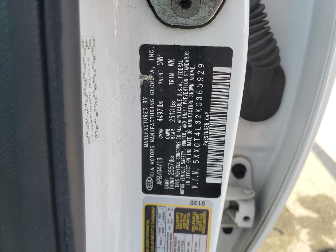 2019 KIA OPTIMA - 5XXGT4L32KG365929, цвет - Белый, 2.4, Бензин, из США