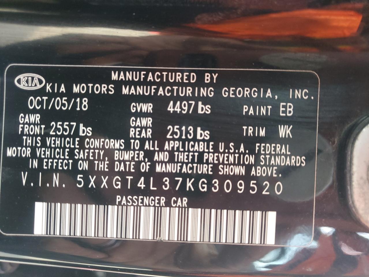Цвет ЧерныйЦилиндры 4VIN 5XXGT4L37KG309520Состояние Заводится и едет (проверено)Повреждения НезначительныеДата аукциона 2025-10-09