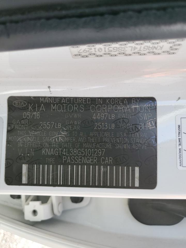 2016 KIA OPTIMA - KNAGT4L38G5101297, цвет - Белый, 2.4, Бензин, из США
