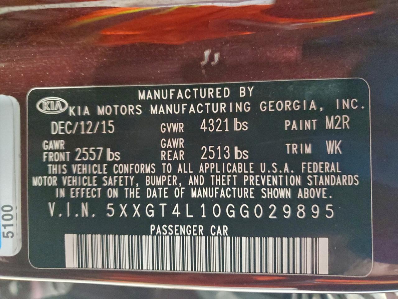 2016 KIA OPTIMA - 5XXGT4L10GG029895, цвет - Бургундия, 1.6, Бензин, из США