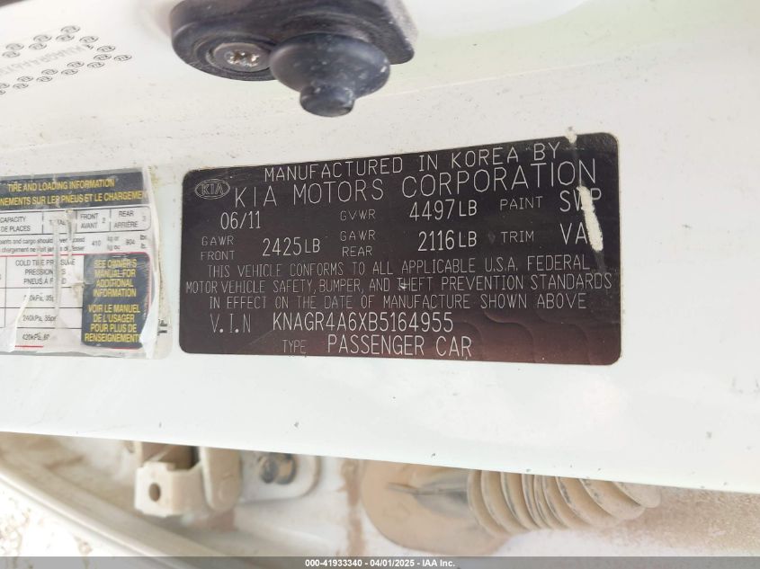 2011 KIA OPTIMA - KNAGR4A6XB5164955, цвет - Черный, 2.0, Бензин, Передний привод из США
