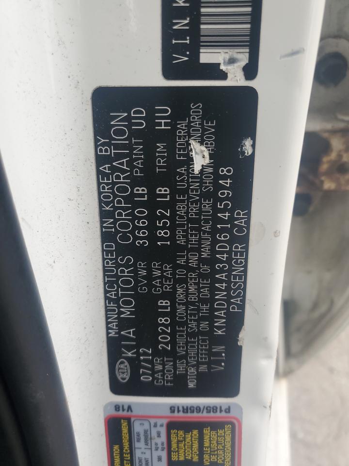 2013 KIA RIO - KNADN4A34D6145948, цвет - Белый, 1.6, Бензин, из США