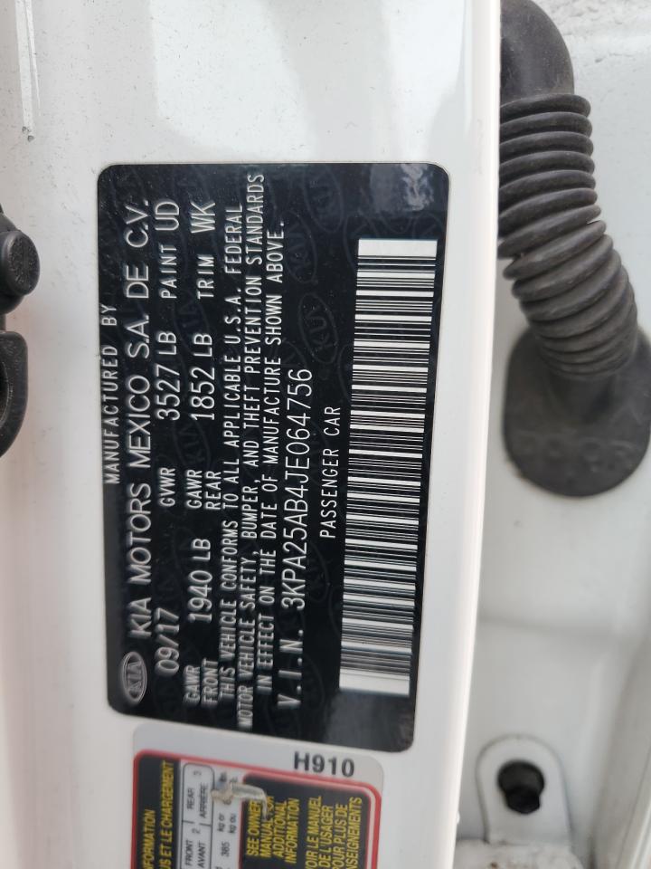 2018 KIA RIO - 3KPA25AB4JE064756, цвет - Белый, 1.6, Бензин, из США