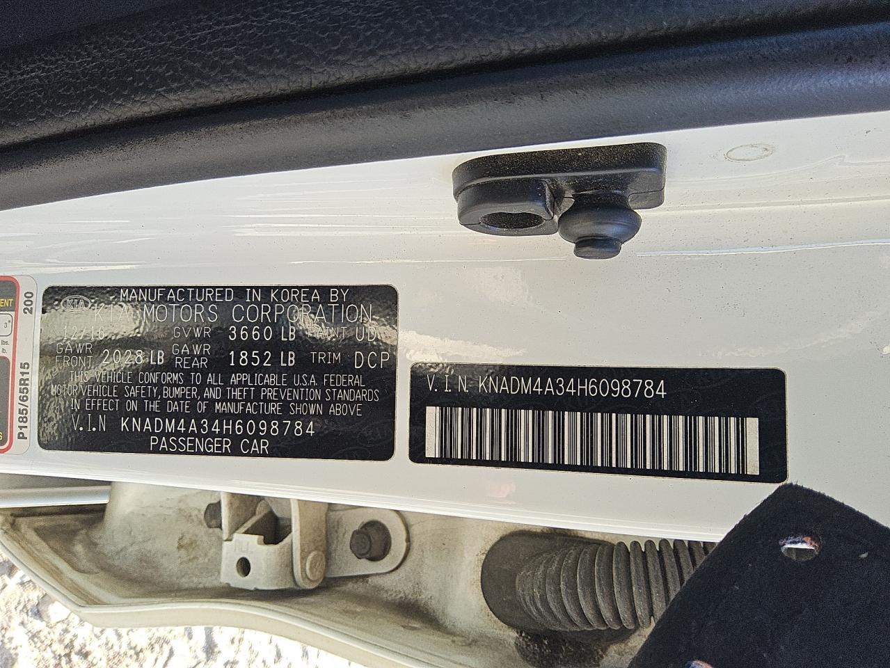 2017 KIA RIO - KNADM4A34H6098784, цвет - Белый, 1.6, Бензин, из США