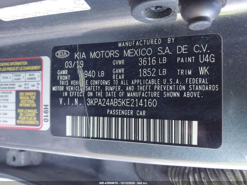 2019 KIA RIO - 3KPA24AB5KE214160, цвет - Синий, 1.6, Бензин, Передний привод из США