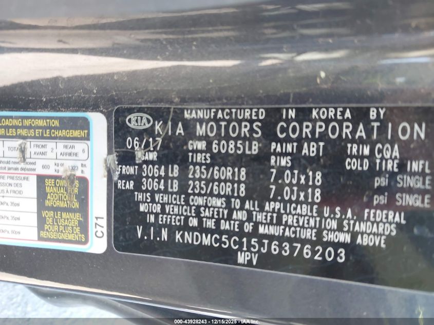Цвет СерыйЦилиндры 6Привод Передний приводVIN KNDMC5C15J6376203Состояние Заводится и едет (проверено)Повреждения Задняя