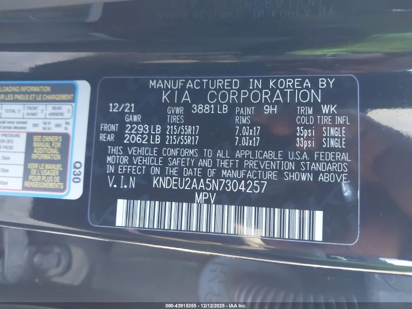 2022 KIA SELTOS - KNDEU2AA5N7304257, цвет - Черный, 2.0, Бензин, Передний привод из США
