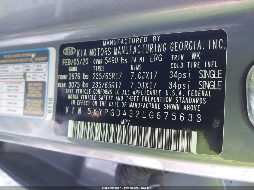 2020 KIA SORENTO L
