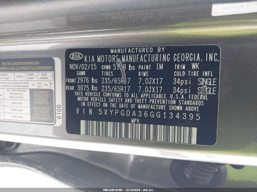 Цвет СерыйЦилиндры 4Привод Полный приводVIN 5XYPGDA36GG134395Состояние Заводится и едет (проверено)Повреждения Передняя или задняя