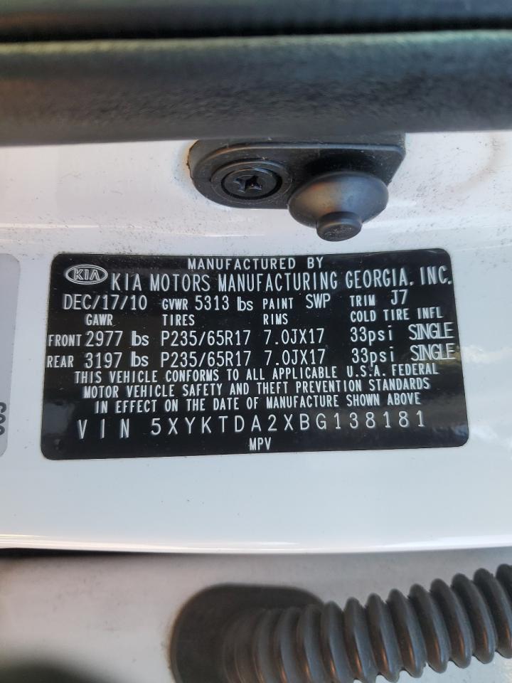 2011 KIA SORENTO - 5XYKTDA2XBG138181, цвет - Белый, 3.5, Бензин, Полный привод из США