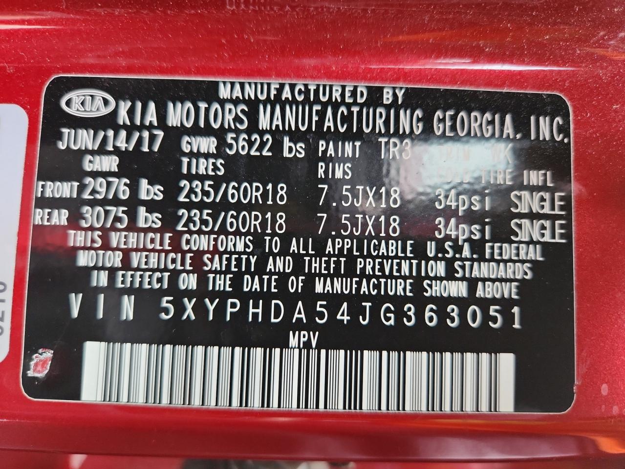 2018 KIA SORENTO - 5XYPHDA54JG363051, цвет - Бордовый, 3.3, Бензин, Полный привод из США