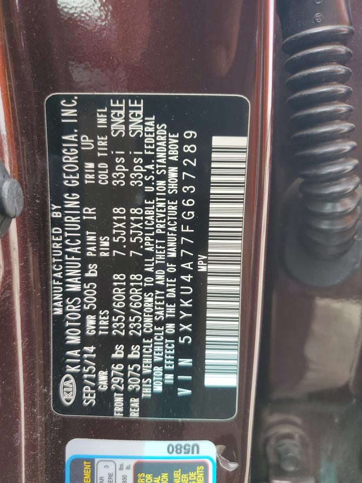 2015 KIA SORENTO - 5XYKU4A77FG637289, цвет - Бургундия, 3.3, Бензин, из США