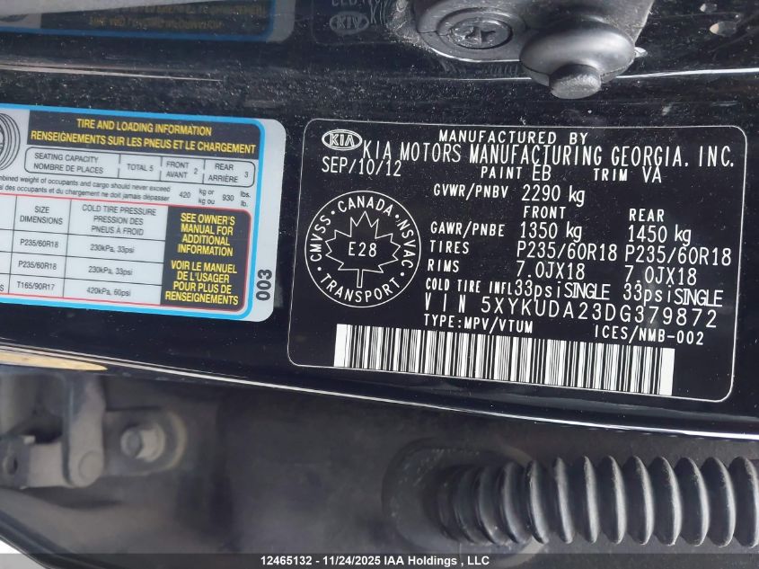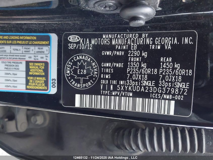 2013 KIA SORENTO - 5XYKUDA23DG379872, цвет - Черный, , Бензин, Полный привод из США