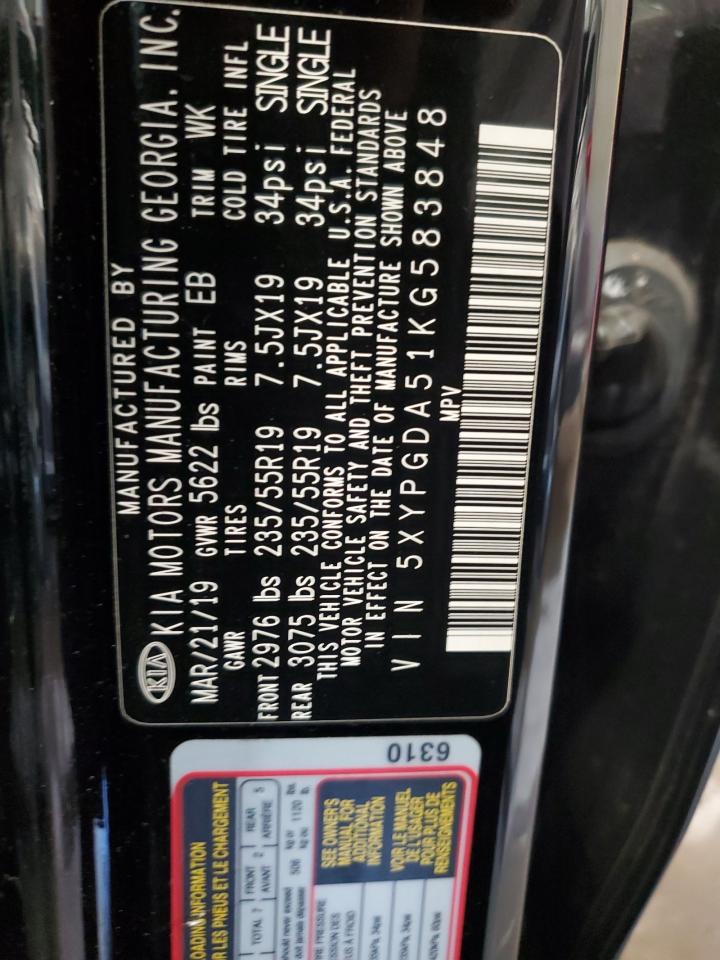 2019 KIA SORENTO - 5XYPGDA51KG583848, цвет - Черный, 3.3, Бензин, Полный привод из США