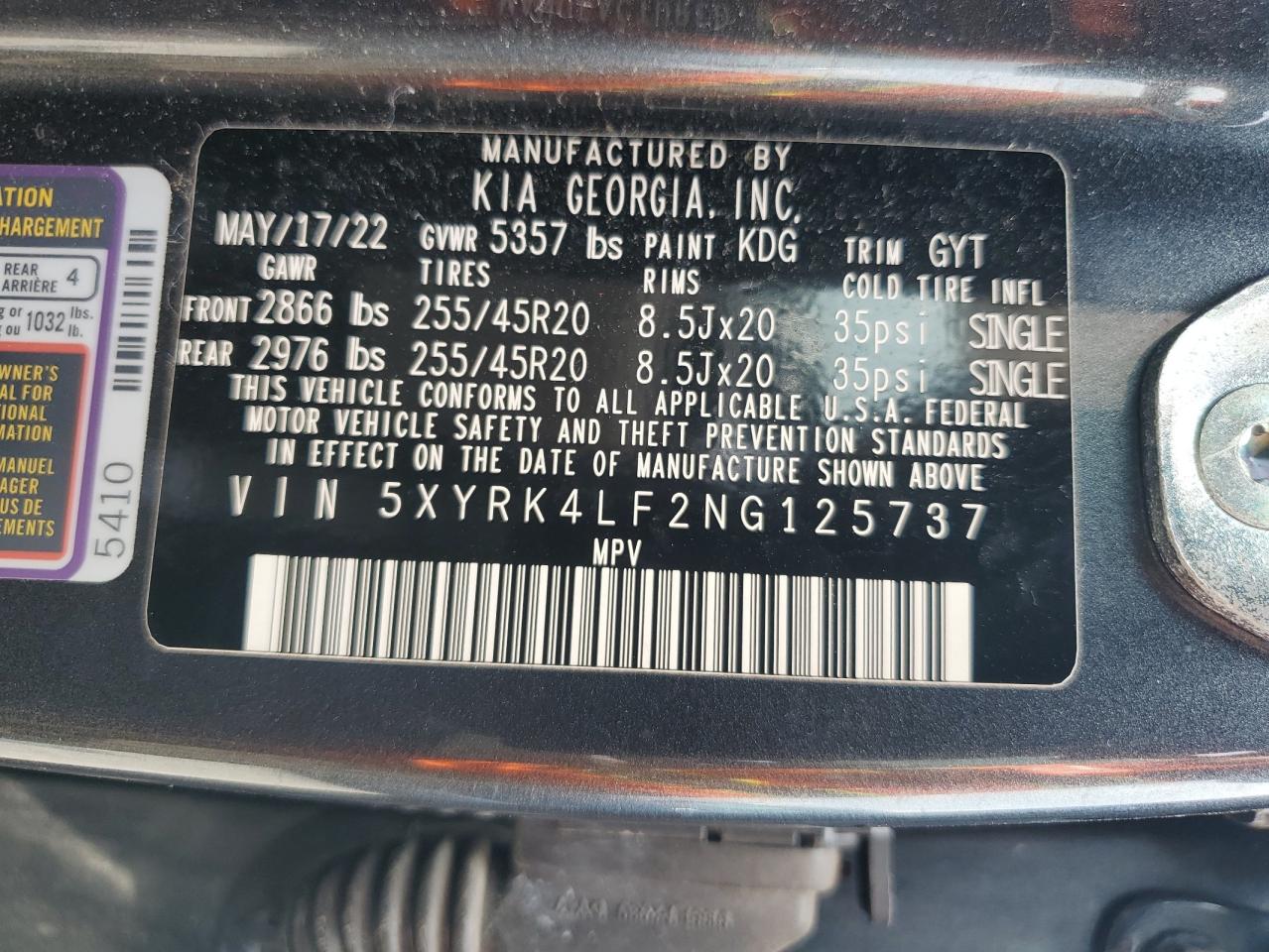 Цвет СерыйЦилиндры 4VIN 5XYRK4LF2NG125737Состояние ЗаводитсяПовреждения Передняя или задняяДата аукциона 2025-10-09