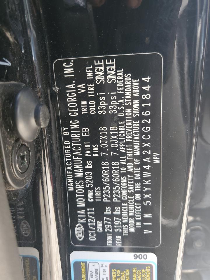 2012 KIA SORENTO - 5XYKW4A2XCG261844, цвет - Черный, 3.5, Бензин, из США