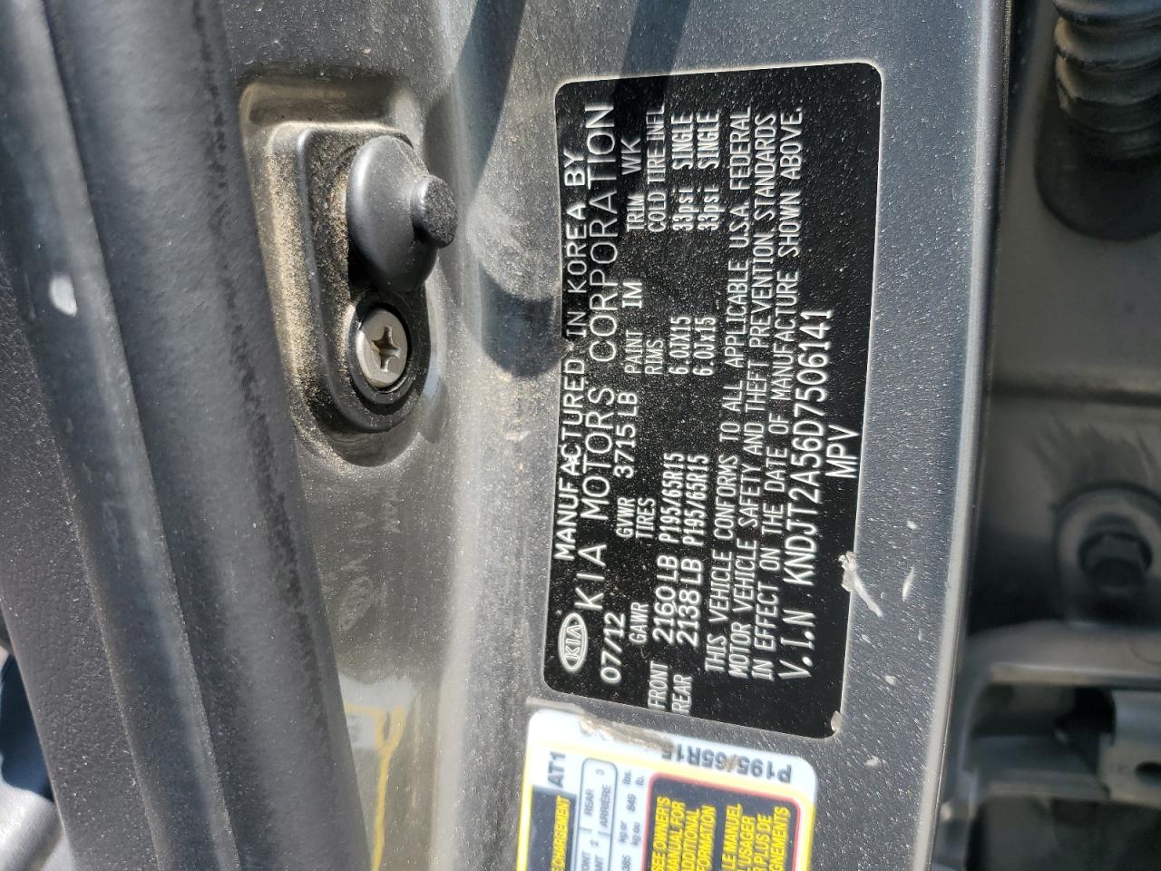 Цвет СерыйЦилиндры 4VIN KNDJT2A56D7506141Состояние НеизвестноПовреждения Вандализм