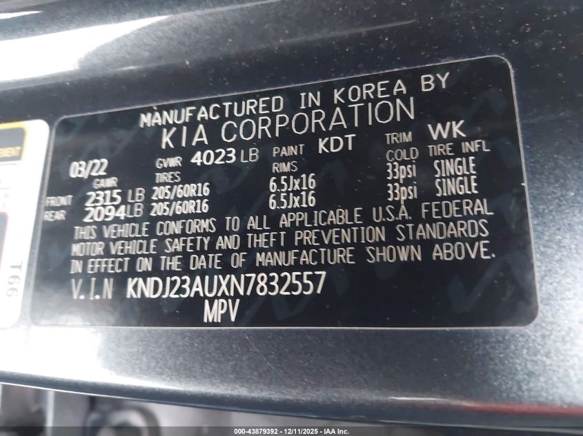 Цвет СерыйЦилиндры 4Привод Передний приводVIN KNDJ23AUXN7832557Состояние Заводится и едет (проверено)Повреждения Передняя или задняя