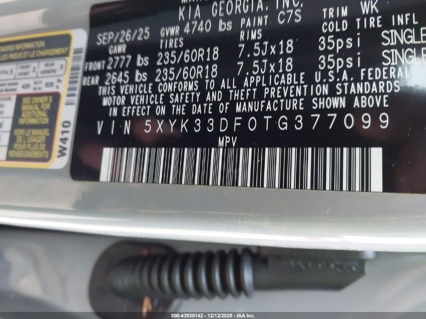 Цвет СерыйЦилиндры 4Привод Передний приводVIN 5XYK33DF0TG377099Состояние СтационарноПовреждения Передняя или задняя