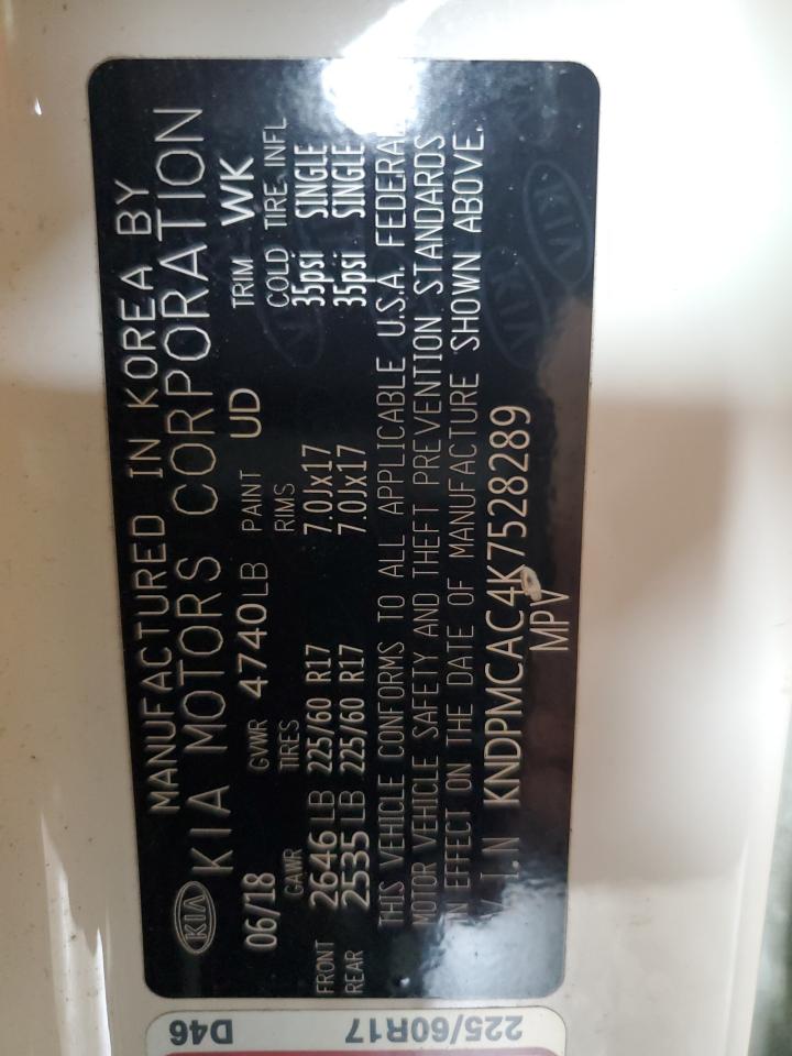 2019 KIA SPORTAGE - KNDPMCAC4K7528289, цвет - Белый, 2.4, Бензин, Полный привод из США