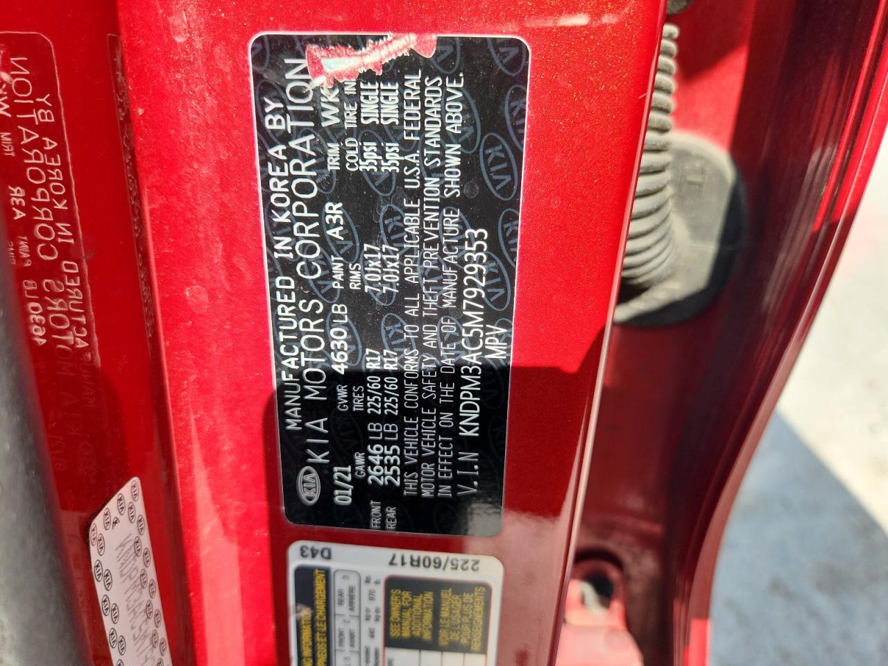 2021 KIA SPORTAGE - KNDPM3AC5M7929353, цвет - Красный, 2.4, Бензин, из США