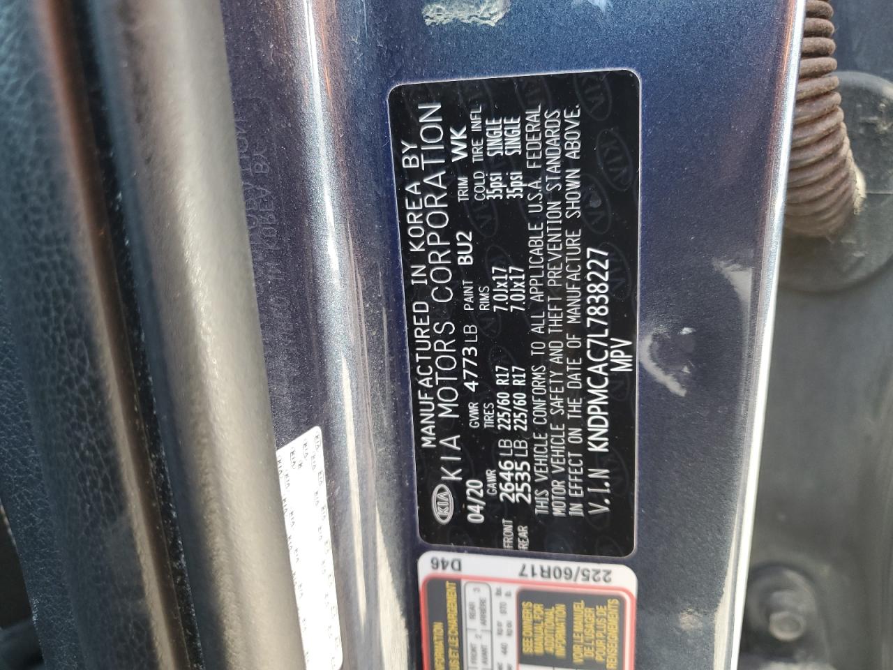 Цвет СинийЦилиндры 4Привод Полный приводVIN KNDPMCAC7L7838227Состояние Заводится и едет (проверено)Повреждения НезначительныеДата аукциона 2025-10-09