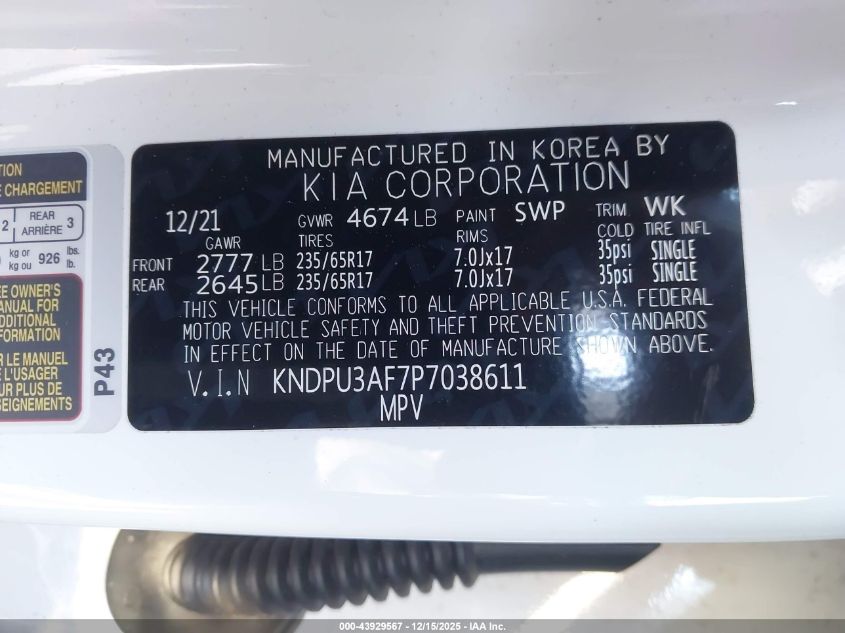2023 KIA SPORTAGE - KNDPU3AF7P7038611, цвет - Белый, 2.5, Бензин, Передний привод из США