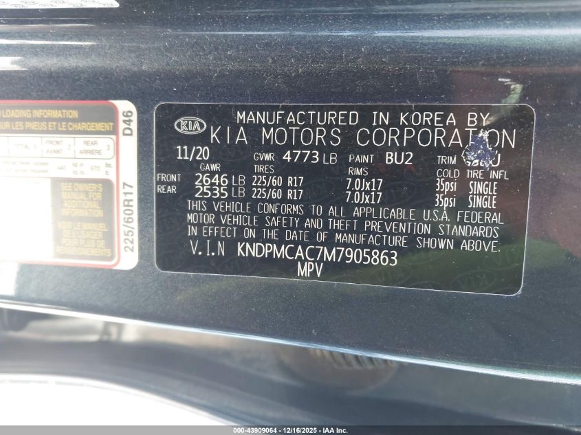 2021 KIA SPORTAGE - KNDPMCAC7M7905863, цвет - , 2.4, Бензин, Полный привод из США