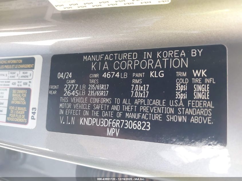 2024 KIA SPORTAGE - KNDPU3DF6R7306823, цвет - , 2.5, Бензин, Передний привод из США
