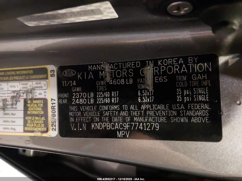 Цвет Цилиндры 4Привод Полный приводVIN KNDPBCAC9F7741279Состояние НеизвестноПовреждения Неизвестно