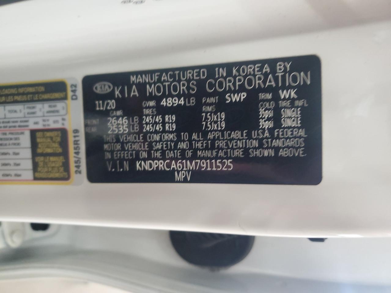 Цвет БелыйЦилиндры 4Привод Полный приводVIN KNDPRCA61M7911525Состояние Заводится и едет (проверено)Повреждения НезначительныеДата аукциона 2025-10-09