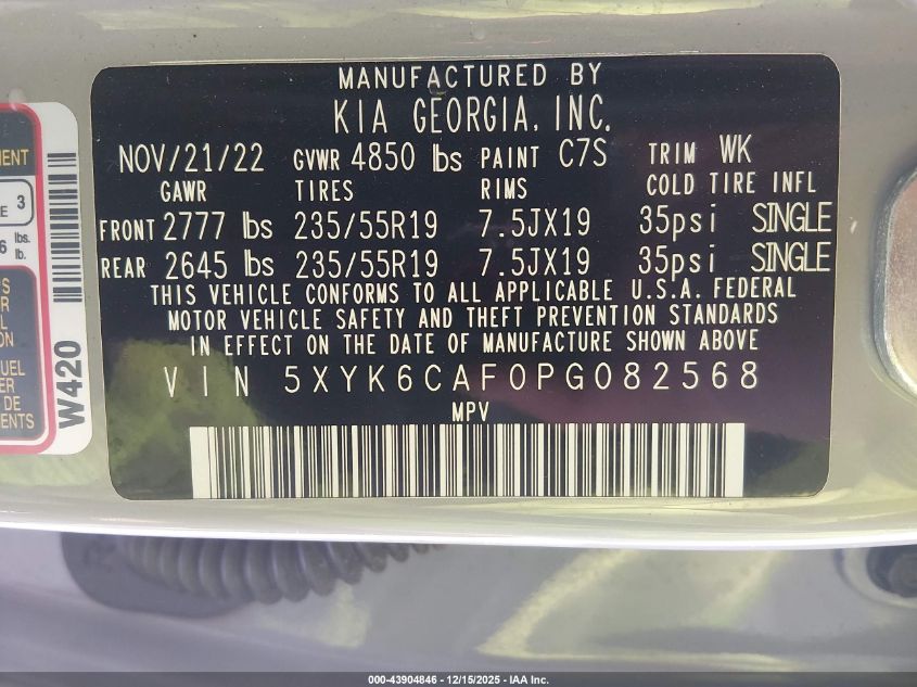 Цвет СерыйЦилиндры 4Привод Полный приводVIN 5XYK6CAF0PG082568Состояние СтационарноПовреждения Передняя или задняя