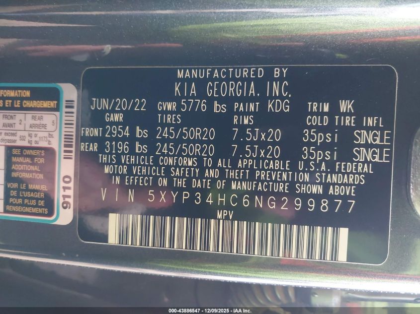 Цвет СерыйЦилиндры 6Привод Передний приводVIN 5XYP34HC6NG299877Состояние СтационарноПовреждения По бокам