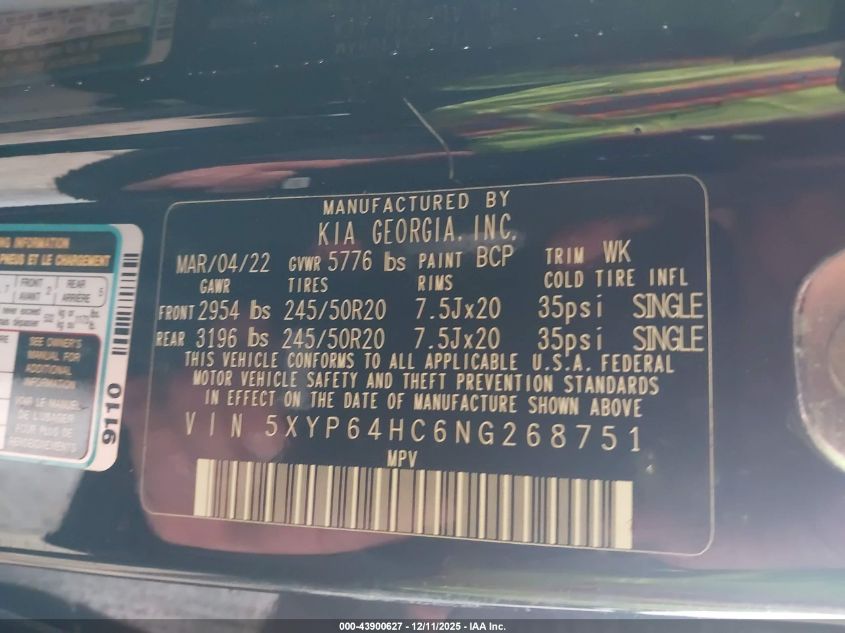 2022 KIA TELLURIDE - 5XYP64HC6NG268751, цвет - Черный, 3.8, Бензин, Передний привод из США