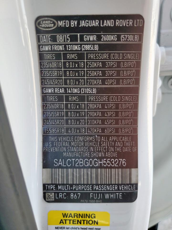 2016 LAND ROVER DISCOVERY - SALCT2BG0GH553276, цвет - Белый, 2.0, Бензин, 4x4 с задним приводом из США