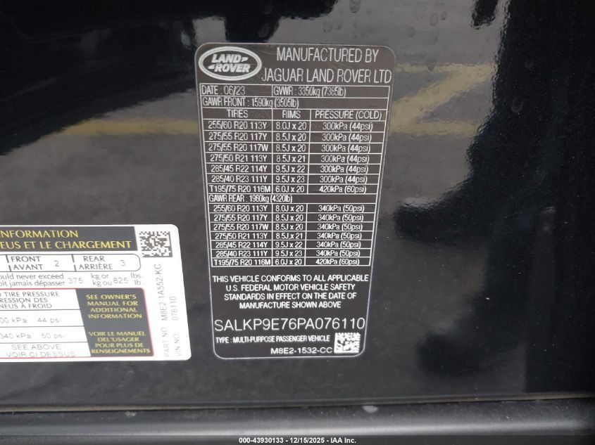 2023 LAND ROVER RANGE ROVER - SALKP9E76PA076110, цвет - , 4.4, Бензин, Полный привод из США