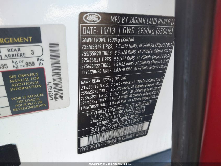Цвет КрасныйЦилиндры 6Привод Полный приводVIN SALWR2WF6EA319971Состояние СтационарноПовреждения Обычный износДата аукциона 2025-12-17