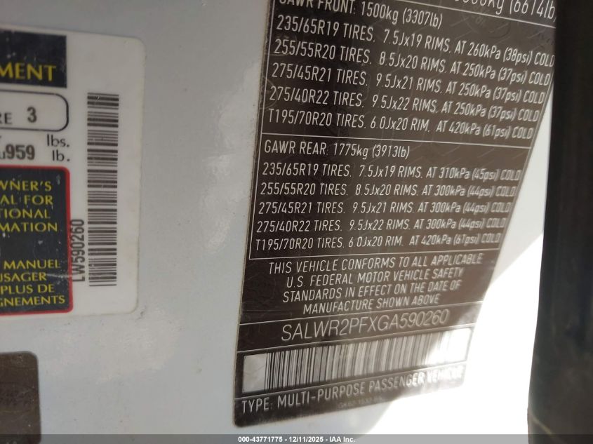 Цвет БелыйЦилиндры 6Привод Полный приводVIN SALWR2PFXGA590260Состояние СтационарноПовреждения По всему авто
