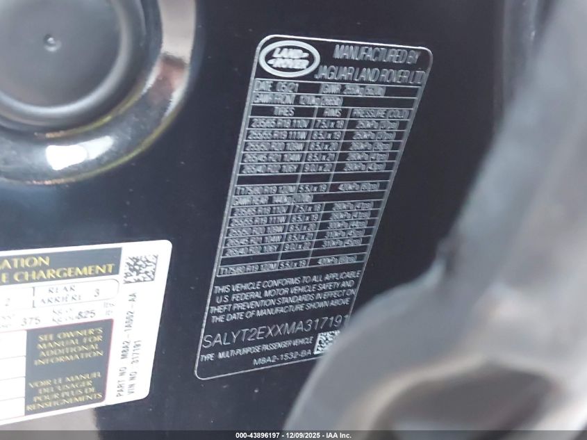 2021 LAND ROVER RANGE ROVER VELAR - SALYT2EXXMA317191, цвет - Черный, 2.0, Бензин, Полный привод из США