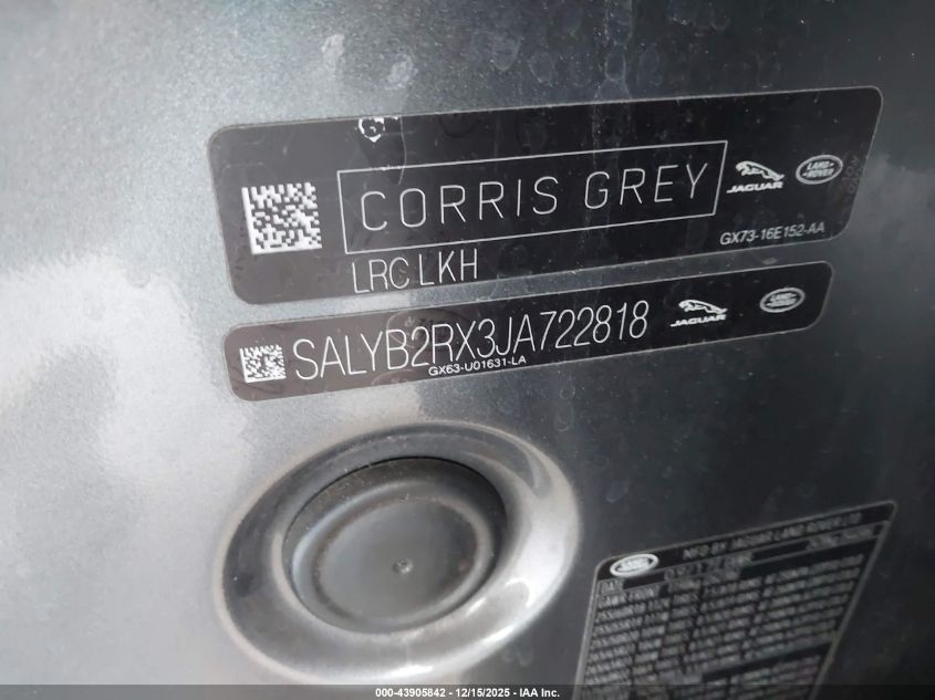 2018 LAND ROVER RANGE ROVER VELAR - SALYB2RX3JA722818, цвет - , 2.0, Бензин, Полный привод из США