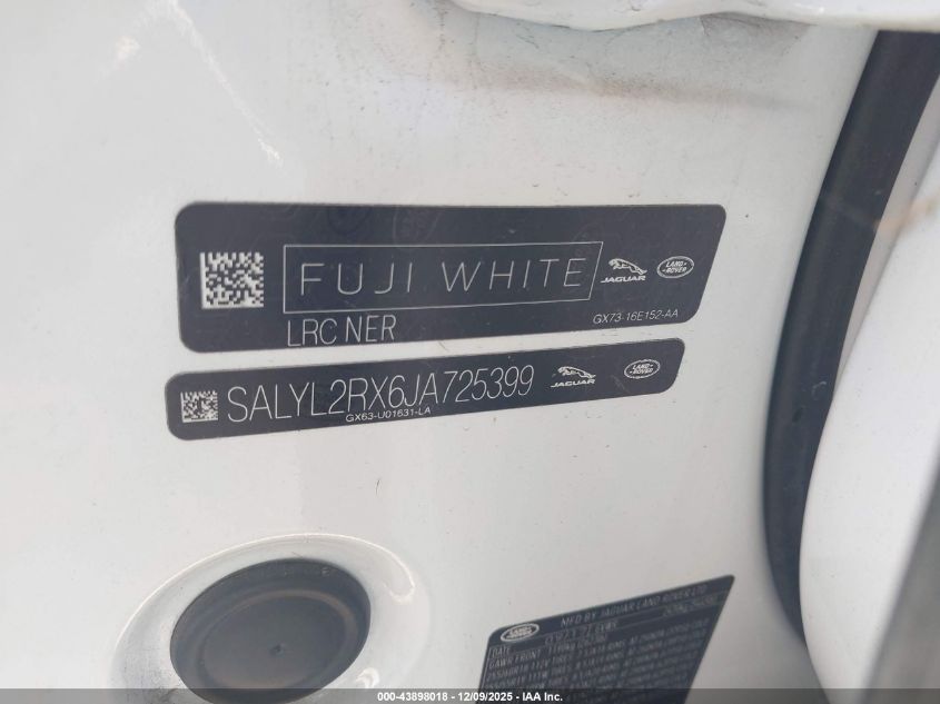 2018 LAND ROVER RANGE ROVER VELAR - SALYL2RX6JA725399, цвет - Белый, 2.0, Бензин, Полный привод из США