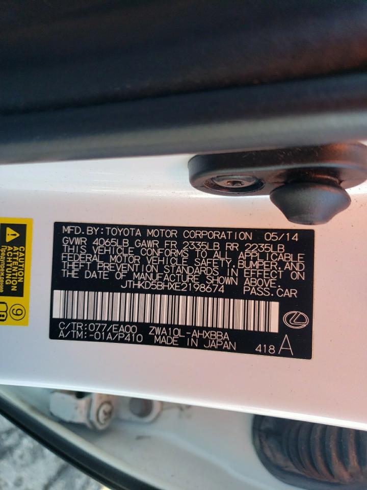 2014 LEXUS CT 200H - JTHKD5BHXE2198674, цвет - Белый, 1.8, Гибрид, из США
