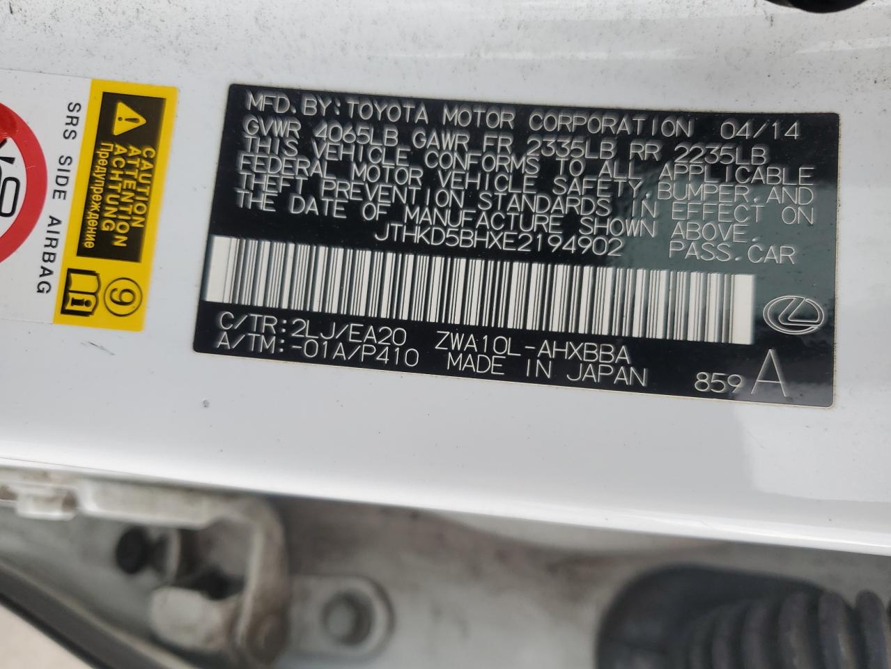2014 LEXUS CT 200H - JTHKD5BHXE2194902, цвет - Белый, 1.8, Гибрид, из США
