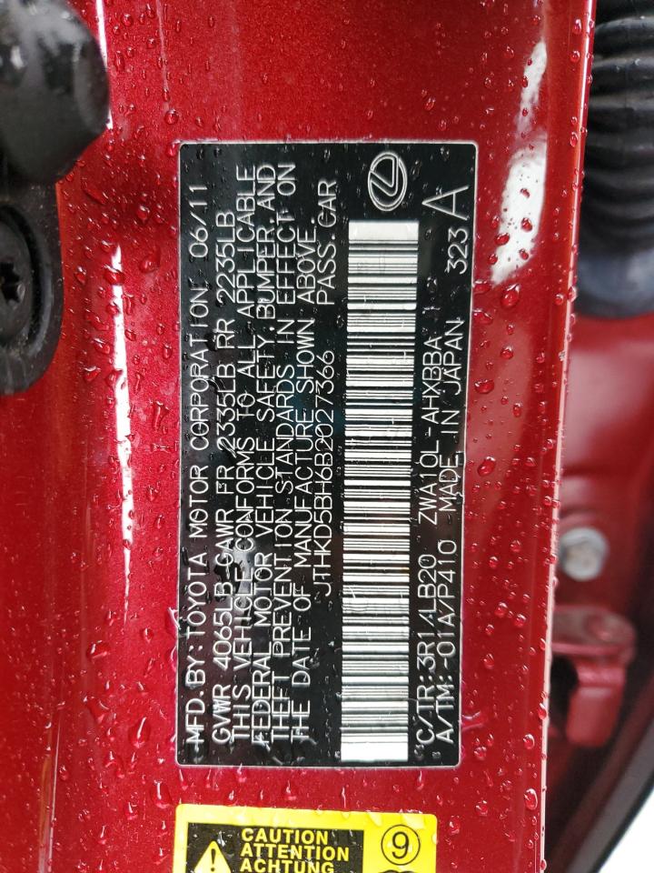 2011 LEXUS CT 200H - JTHKD5BH6B2027366, цвет - Красный, 1.8, Гибрид, из США