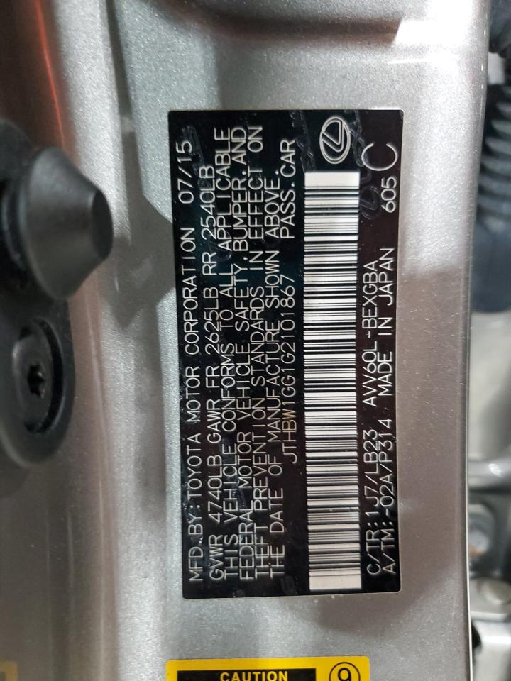 2016 LEXUS ES 300H - JTHBW1GG1G2101867, цвет - Серебряный, 2.5, Гибрид, из США