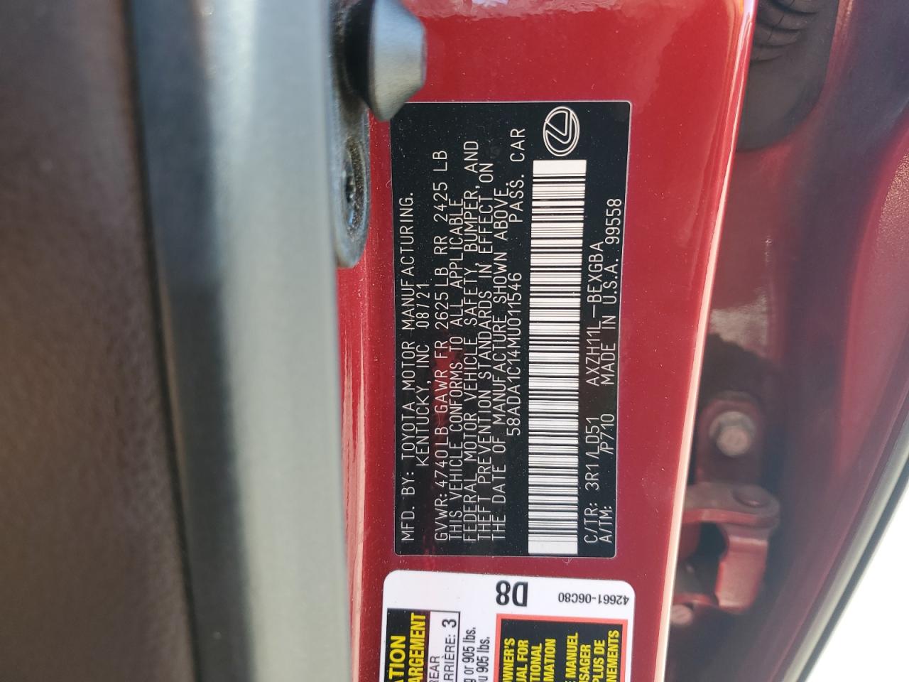 2021 LEXUS ES 300H - 58ADA1C14MU011546, цвет - Красный, 2.5, Гибрид, из США