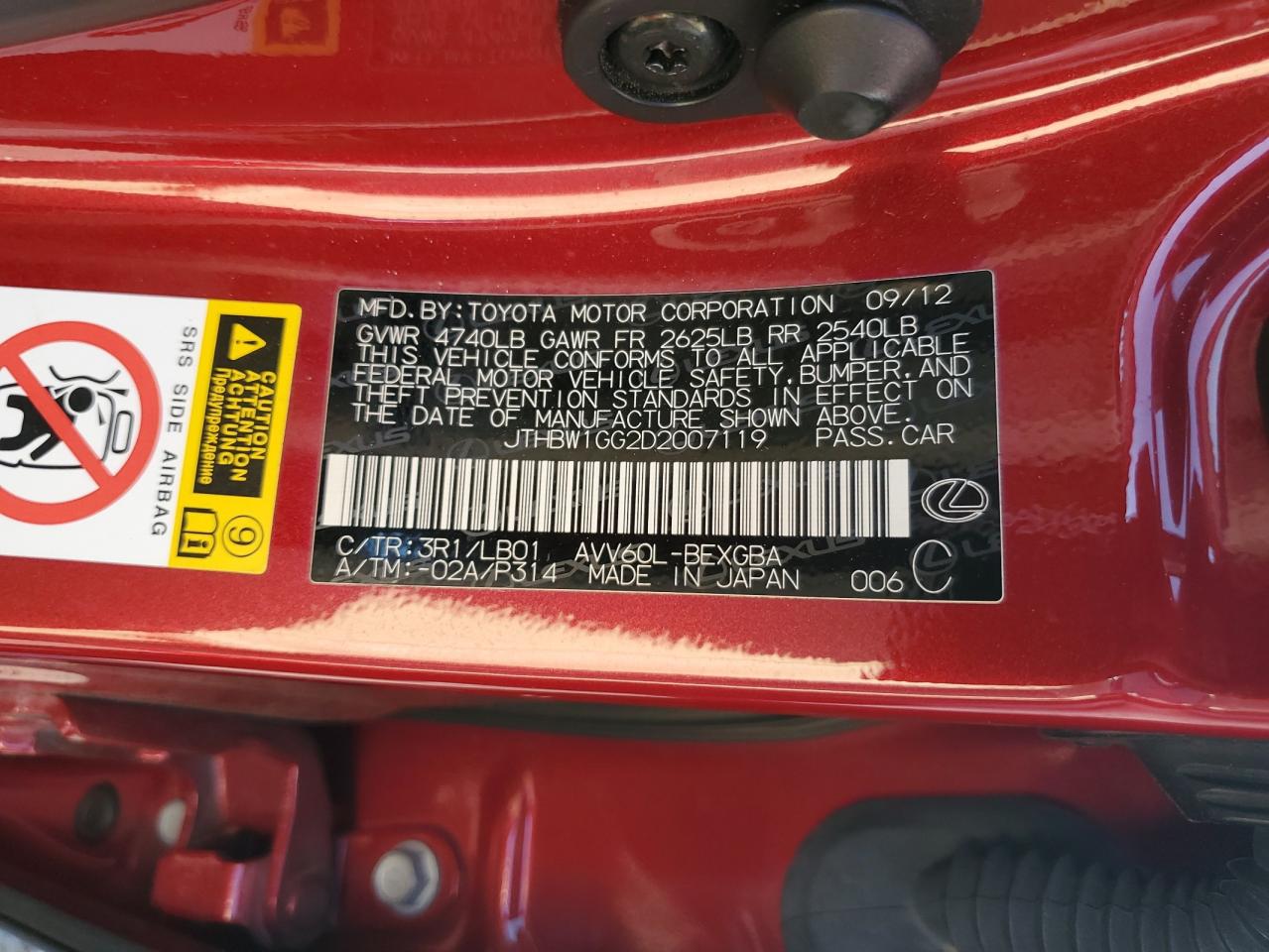 Цвет КрасныйЦилиндры 4VIN JTHBW1GG2D2007119Состояние Заводится и едет (проверено)Повреждения По бокам