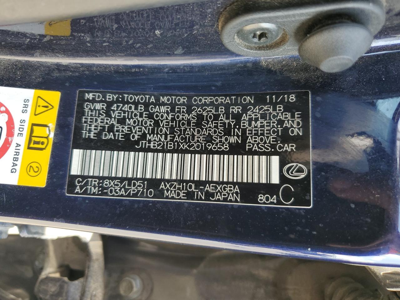 2019 LEXUS ES 300H - JTHB21B1XK2019658, цвет - Синий, 2.5, Гибрид, из США